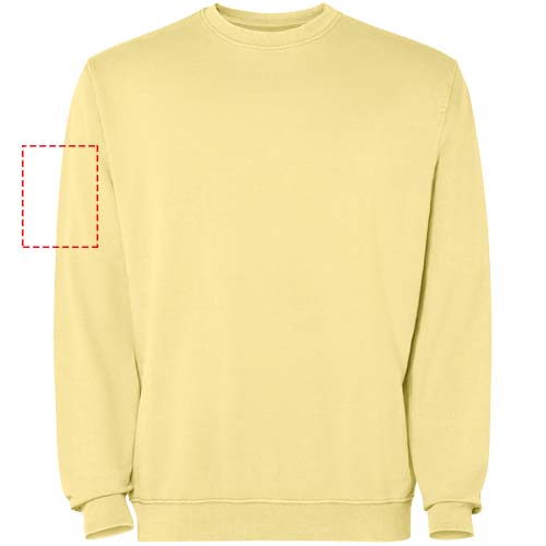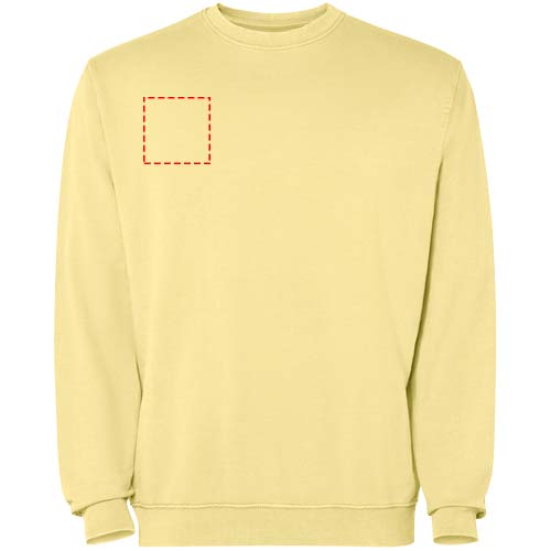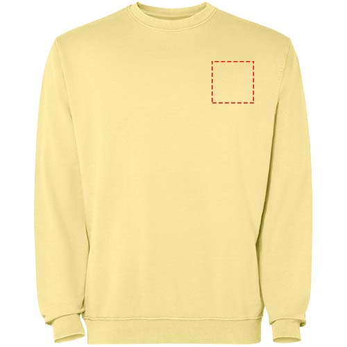 Unisex Pullover mit Acid-Wash-Finish. 2x1 gerippter Kragen, Bündchen und Saum in Ton-in-Ton. Verstärkte Nähte an Bündchen, Saum, Bund und Armausschnitten. Ton-in-Ton Abdeckstich am Hals.